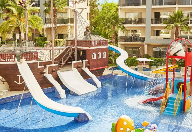 An apartment-style family resort in Port d’Alcúdia with a pirate-ship pool, multiple swimming pools and layouts that work better than standard hotel rooms once you are travelling with more than one child.